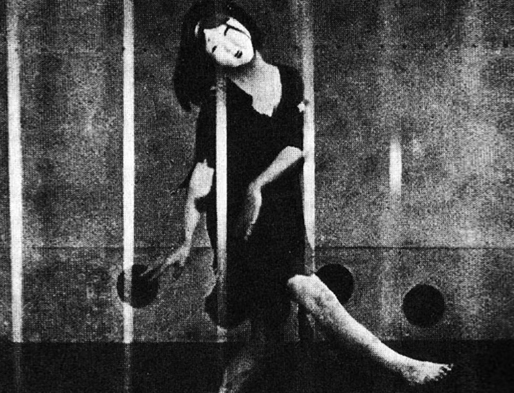 A masked inmate (Eiko Minami) dances. The shot of the dancer is superimposed over a shot of her cel's bars, putting the viewer in the position of the husband witnessing – or is he hallucinating – an inescapable nightmare (via). DP: Kōhei Sugiyama.