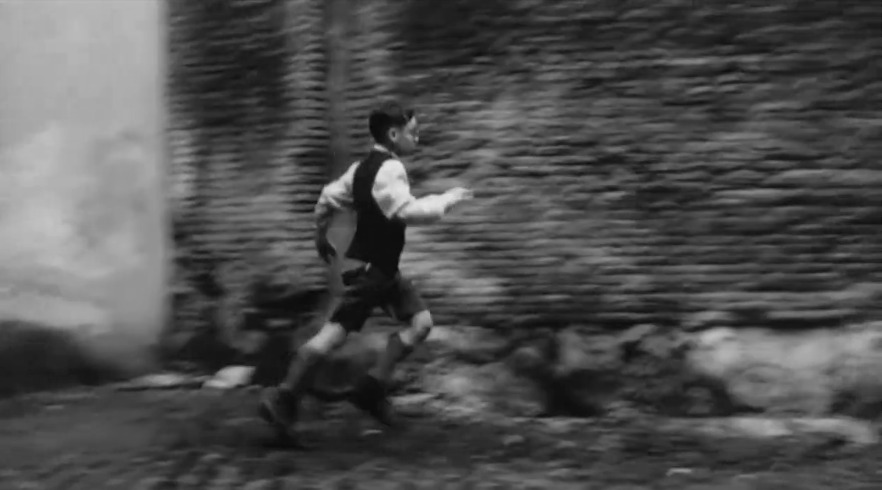 The boy (Francesco Cencioni) on the run in a locked down town. DP: Carlo Tafani.