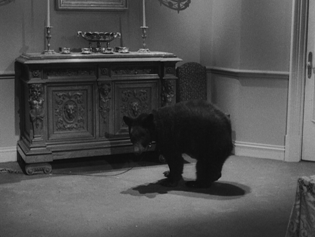 A young brown bear in a luxuriously furnished room. DP: Gabriel Figueroa.