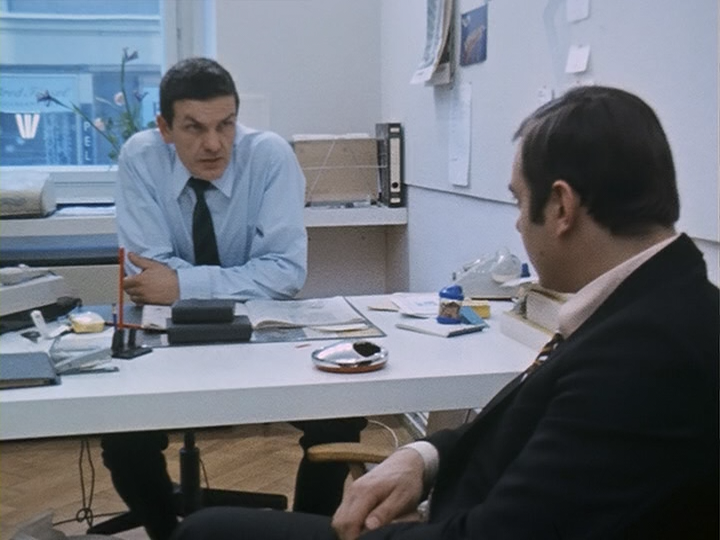 Der Chef (Franz Maron) berates Herr R. (Kurt Raab). DP: Dietrich Lohmann.
